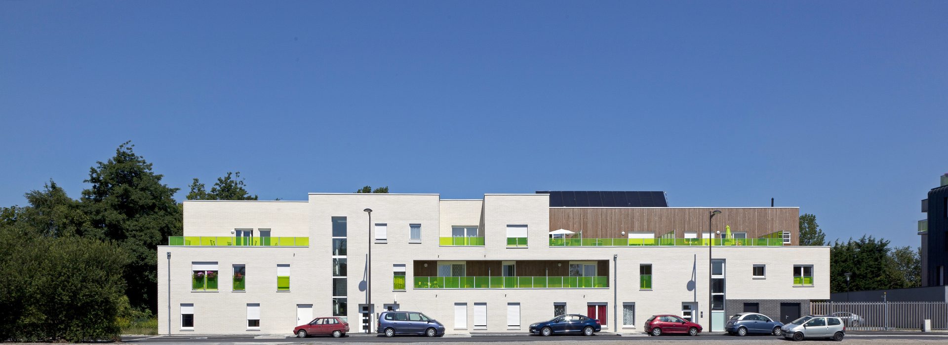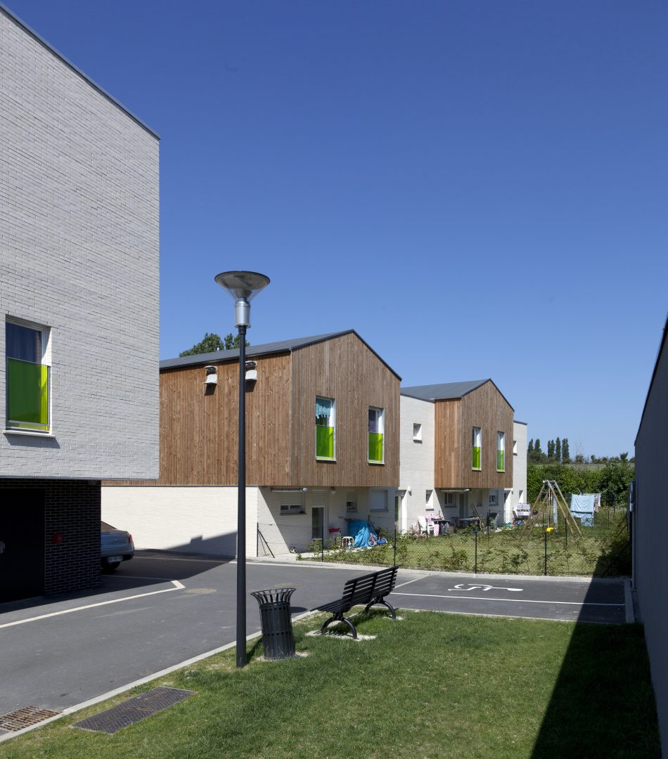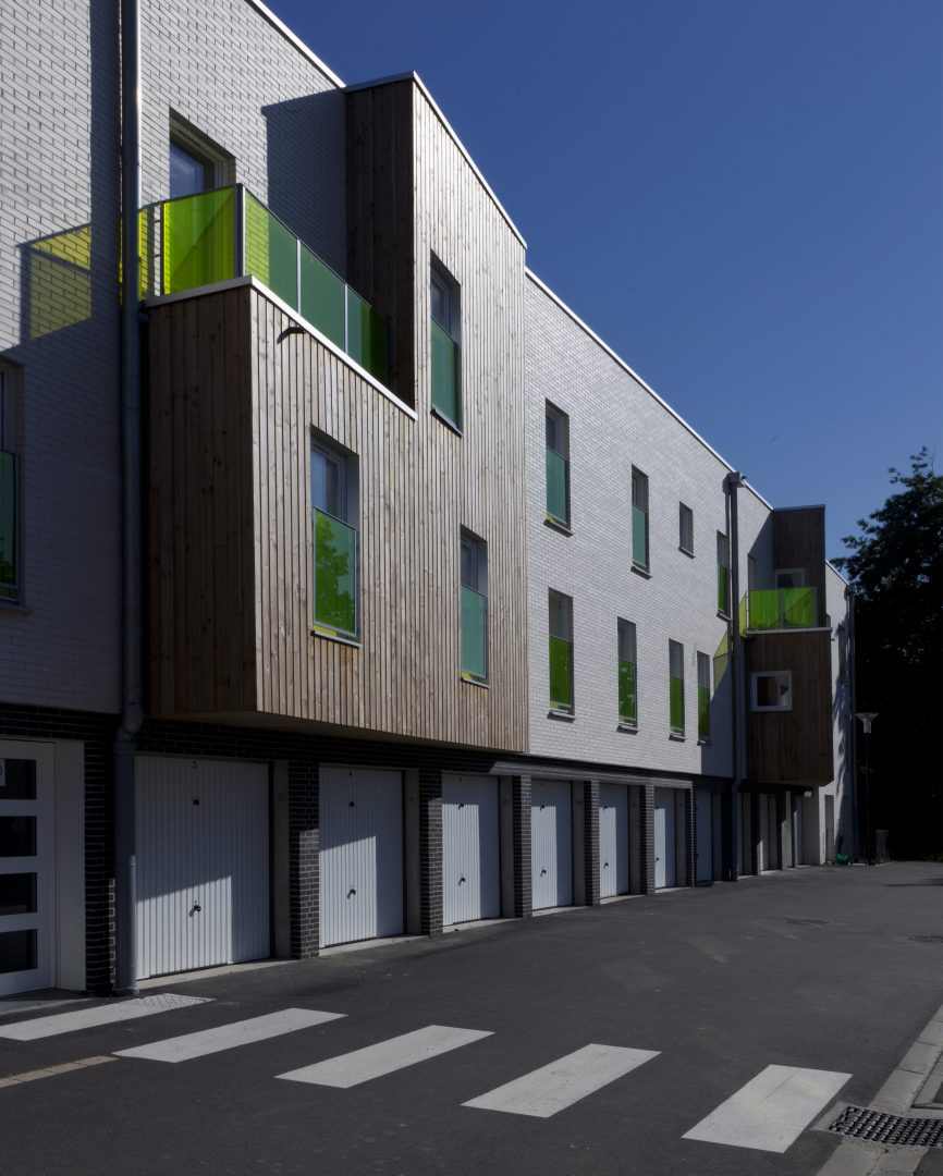 Le présent projet portait sur un programme de construction neuve de 20 logements sur une parcelle de 2477m2. Le projet de 20 logements s’est implanté rue Henri Dunant dans le quartier en pleine mutation et reconstruction du Courghain à Grande-Synthe.