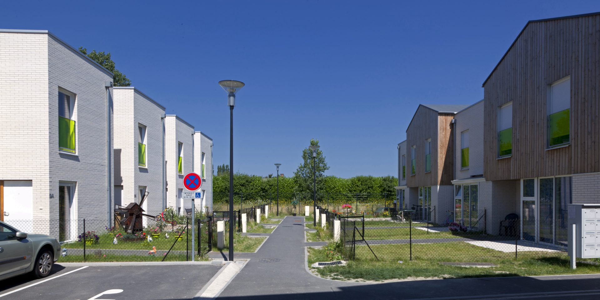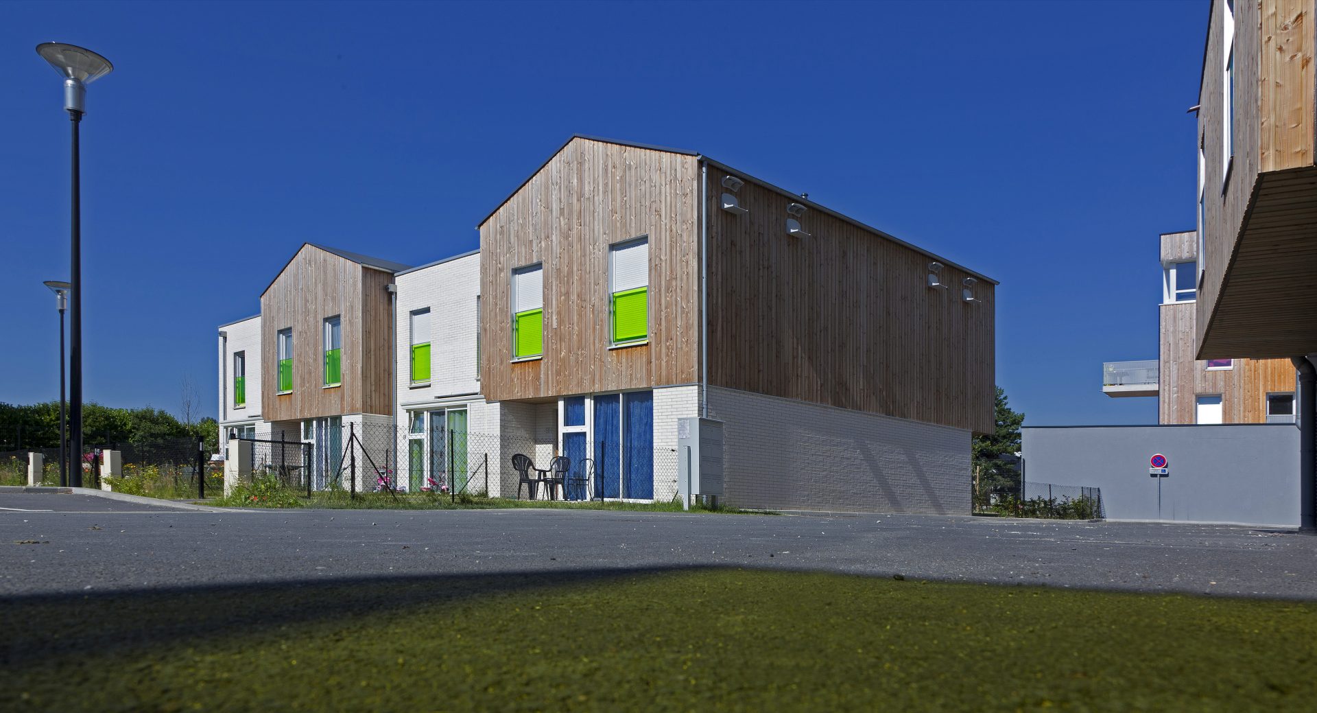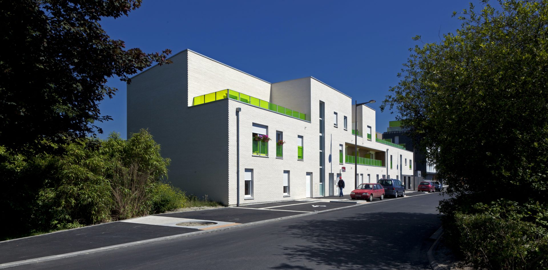 Le présent projet portait sur un programme de construction neuve de 20 logements sur une parcelle de 2477m2. Le projet de 20 logements s’est implanté rue Henri Dunant dans le quartier en pleine mutation et reconstruction du Courghain à Grande-Synthe.