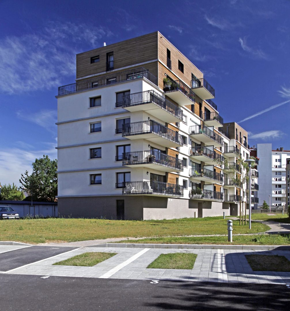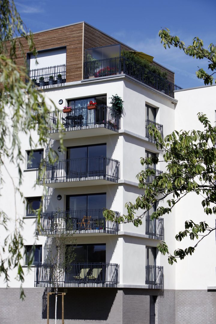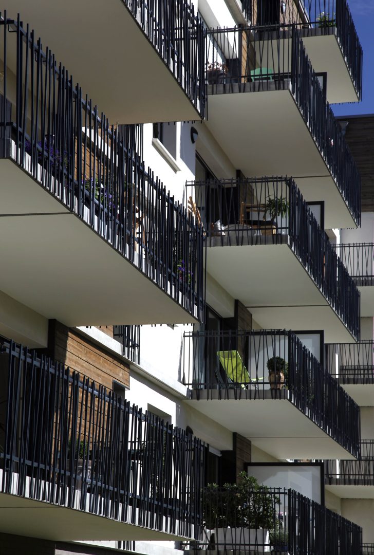 Cette idée est prolongée jusqu’à l’extérieur où chacun de ces séjours est doté d’un bacon ou d’une terrasse, véritable « pièce verte » orientée vers le soleil (sud ou ouest) et devenant le lieu extérieur privatisé propre à chaque logement.