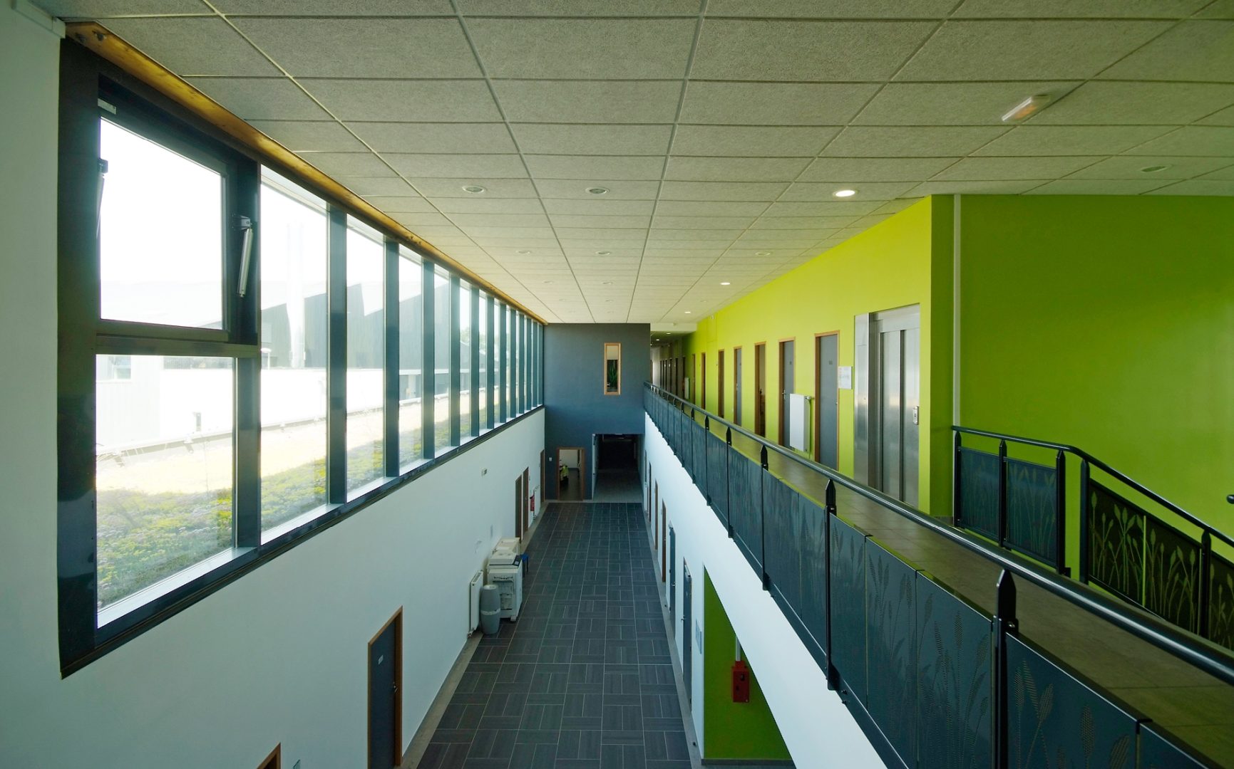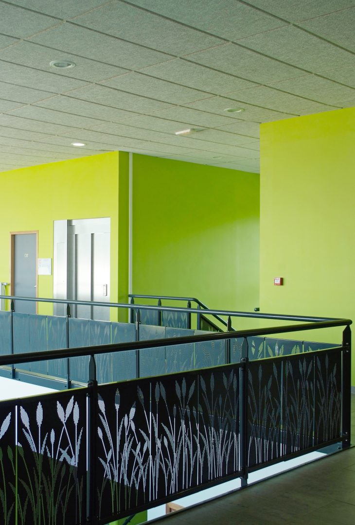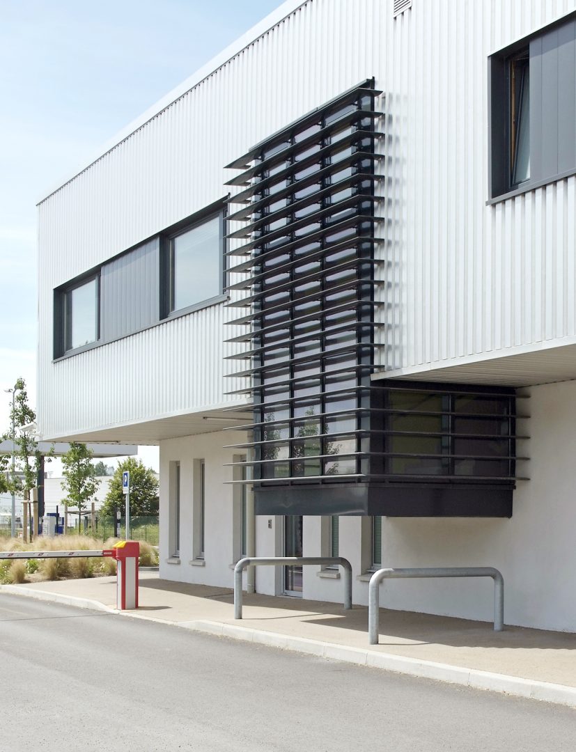 Les notions de qualité environnementale et de développement durable demandent la mise en place d’une conception bioclimatique et le choix de matériaux respectueux de l’environnement et d’équipements économe en énergie. Ces choix sont détaillés dans la notice démarche HQE, néanmoins l’orientation de notre projet permet par ailleurs de profiter au maximum des moments ensoleillés, de créer une ambiance visuelle satisfaisante et d’utiliser les apports énergétiques solaires en hiver dans l’établissement. Les apports solaires du premier étage de l’Administration sont traités par la mise en place de volets roulants sur les baies au Sud et à l’Ouest. Les grandes baies des sheds des ateliers sont en bardage polycarbonate translucide ce qui assurent une bonne diffusion de la lumière naturelle et évite les éblouissements potentiels.Le bâtiment atelier est en structure et bardage métallique. Associé au bardage solaire (récupérateur d’énergie), il offre pour ce projet le meilleur compromis entre respect de l’environnement, consommation d’énergie, performance technique et respect des coûts. Le revêtement SolarwallMD, doté d’une multitude de petites ouvertures, est installé sur la façade Sud des ateliers ; il est le parement des façades des ateliers. La structure acier des ateliers communautaire est parfaitement adaptée à ce type d’utilisation, du fait de sa résistance et de son adaptabilité aux différentes fonctions. L’acier étant un matériau recyclable, il est parfaitement adapté à la démarche HQE.