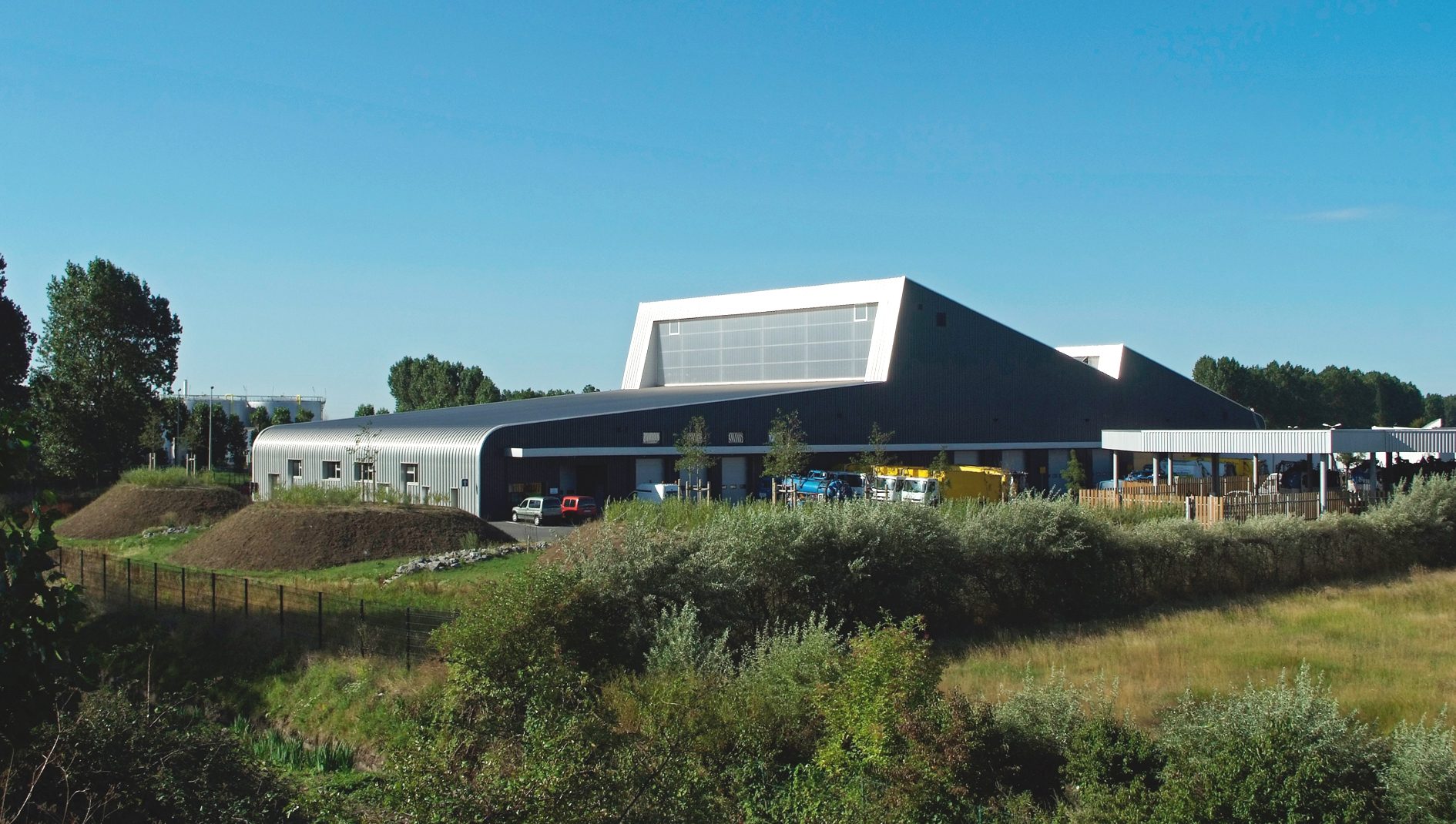 La Communauté Urbaine de Dunkerque affiche sa volonté d’une recherche qualitative en décidant de centraliser l’ensemble des services techniques communautaires dans un seul équipement à Dunkerque – Petite Synthe. Ce bâtiment fait office de signal par sa présence et son architecture. Sa position stratégique est renforcée par un aménagement paysager sur l’ensemble de la parcelle. La localisation et l’image des ateliers communautaires sont une vitrine identitaire de l’entité Communautaire Dunkerquoise. Le projet va plus loin puisqu’il intègre la démarche haute qualité environnementale, défi majeur et hautement symbolique en site industriel. Ces dispositions garantissent donc l’utilisation optimale du centre de la parcelle pour les ateliers et la périphérie, pour le végétal et les noues, tout en protégeant les grandes ouvertures des ateliers du Sud ouest (pluie et vent). La composition d’ensemble s’articule autour de deux bâtiments identifiant leurs fonctions, l’un à l’échelle de la Communauté Urbaine de Dunkerque, l’autre à l’échelle du site industriel et des bâtiments environnants. Le projet crée le lien entre la représentation et la fonction et permet une relation harmonieuse entre ces deux typologies.On retrouve la station service dès l’entrée, après un contact visuel direct avec l’Administration, la circulation oblique vers la gauche direction l’aire de lavage et l’aire de manœuvre avec au Nord le garage et au Sud les ateliers, après un passage de la voirie au droit de toutes les entités fonctionnelles la boucle se termine en repassant à proximité de l’Administration. Cette disposition permet de plus d’assurer une parfaite maîtrise des flux, puisqu’elle garantit la sécurité des déplacements entre les différents services et le contrôle par les autorités respectives.CHOIX ET INCIDENCES ARCHITECTURALES