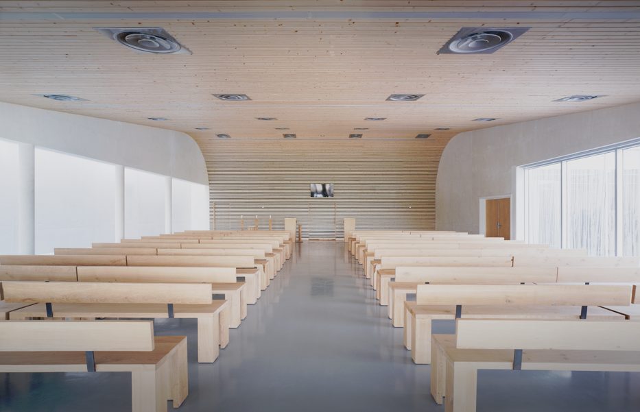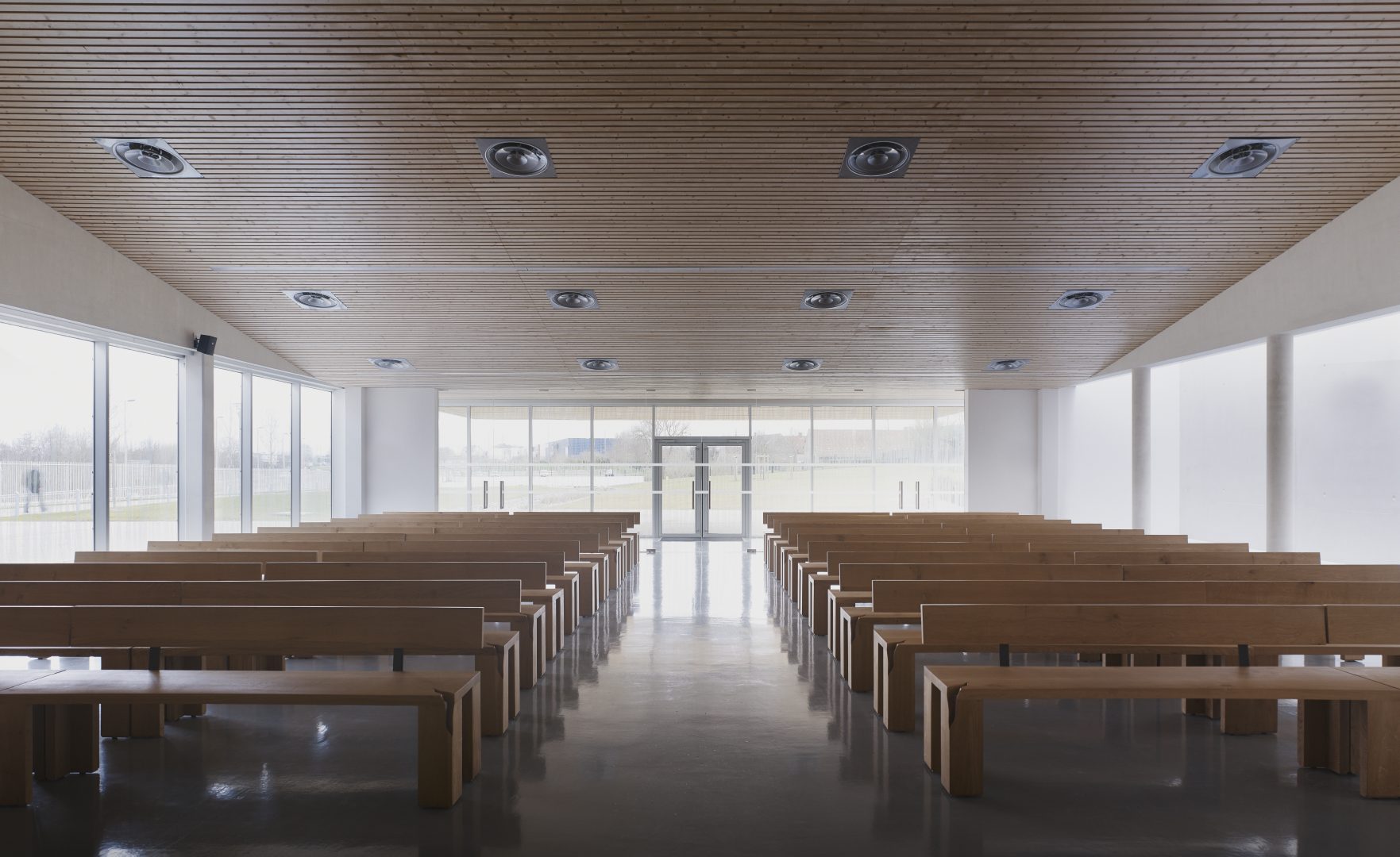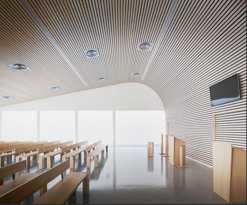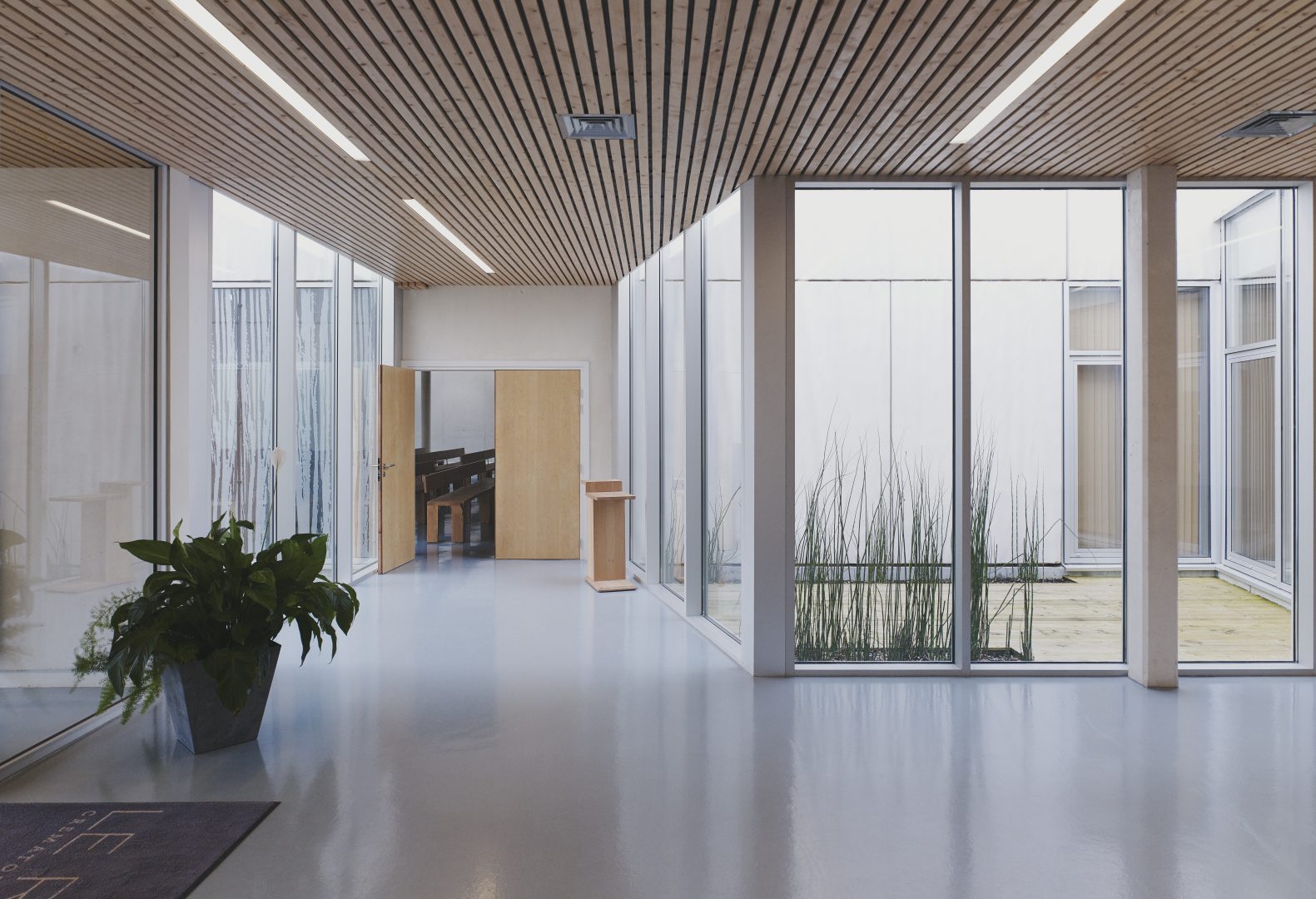 L’ambiance générale recherchée est faite de calme et d’apaisement soulignée par une luminosité toujours présente. Le patio a été utilisé comme lieu de recueillement et d’apaisement dans le rôle d’accompagnement que cet équipement doit prendre en charge avec le personnel. Il ponctue les différentes fonctions et apporte la lumière naturelle au cœur du bâtiment.