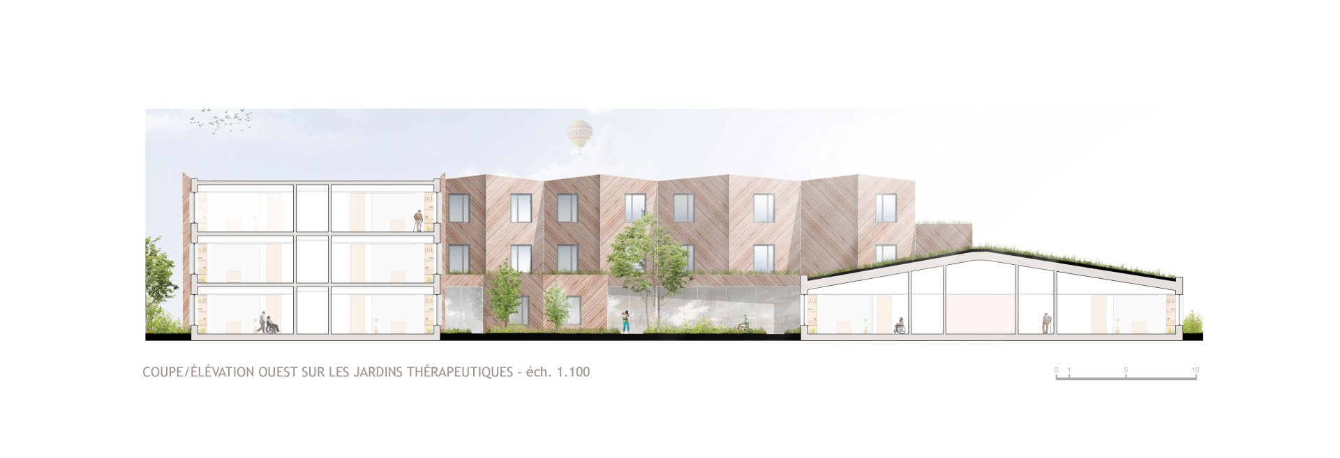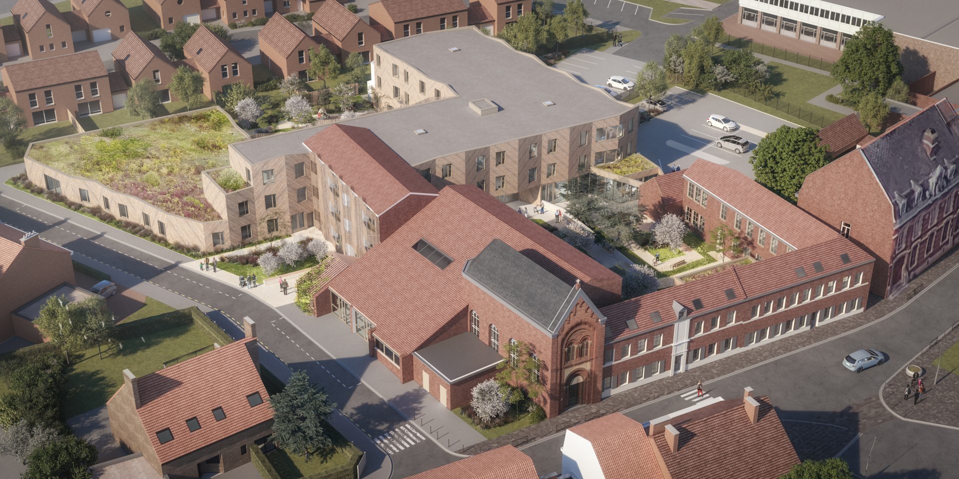 La résidence Obert est pleinement reliée à la ville de Wambrechies, son aile d’accueil de jour longe l’une des artères principales de la ville menant directement à la mairie. Par son emplacement et ses bâtiments existants remarquables du 19ème siècle, cet établissement d’accueil peut véritablement devenir un phare urbain, un repère pour tous renforçant le statut déjà acquis par la chapelle. En lui offrant une nouvelle image et de vraies ouvertures sur la ville, l’établissement pourra établir un vrai dialogue avec le centre de la ville et son urbanité environnante.