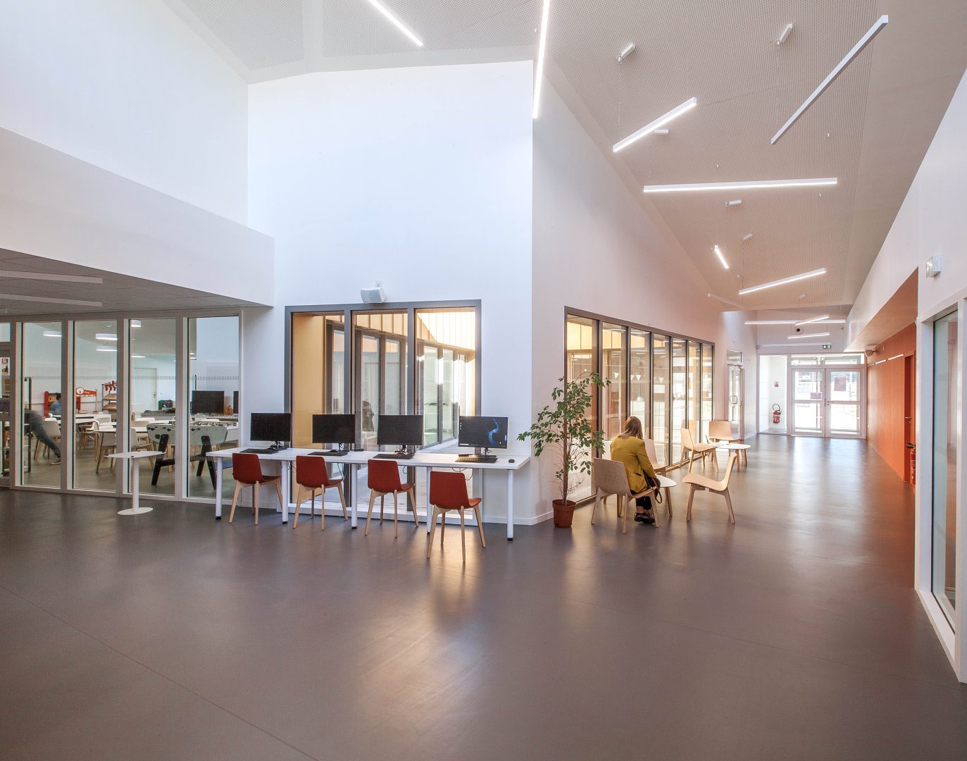 - Matériaux biosourcés linoléum et menuiserie intérieur bois y compris mur rideau