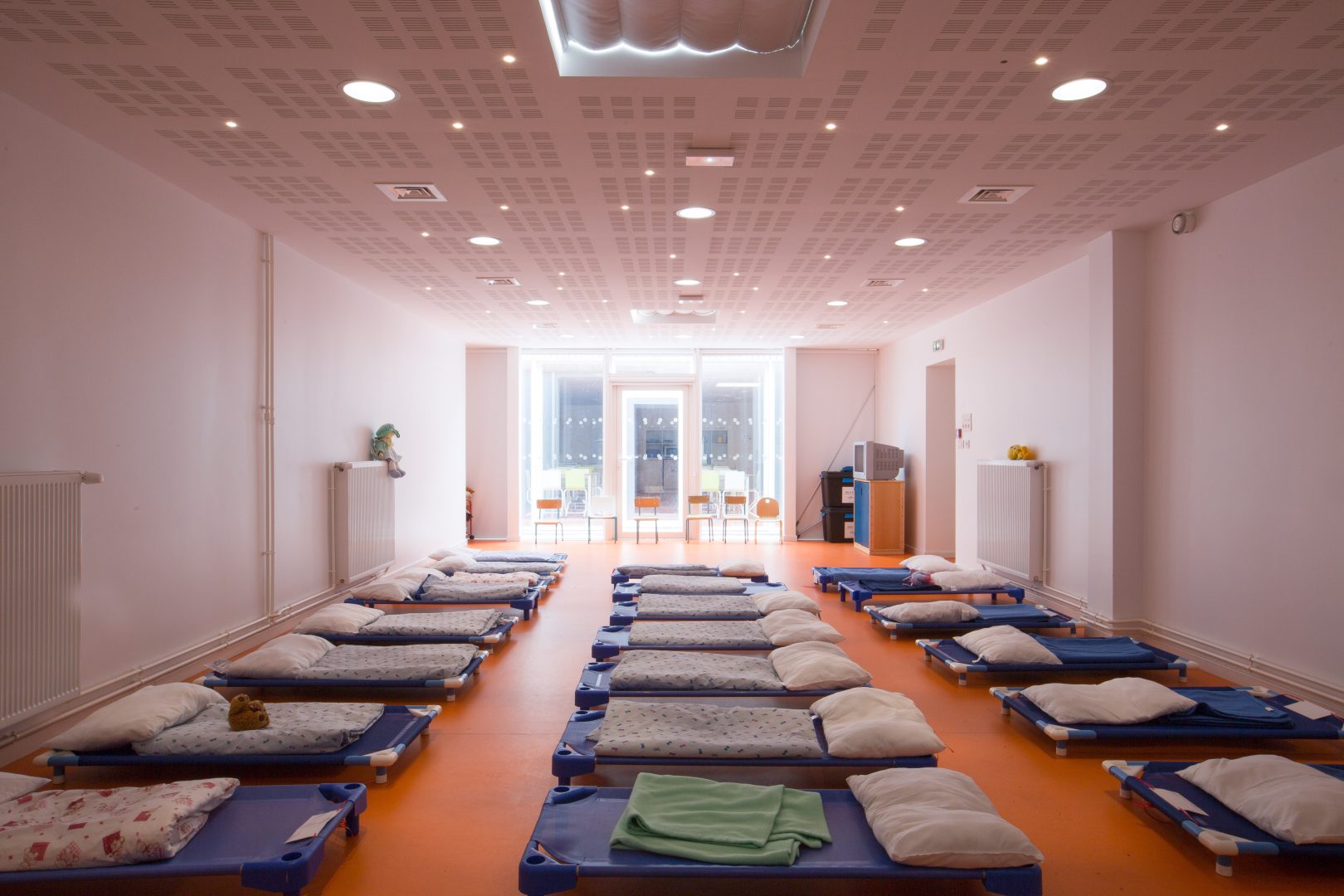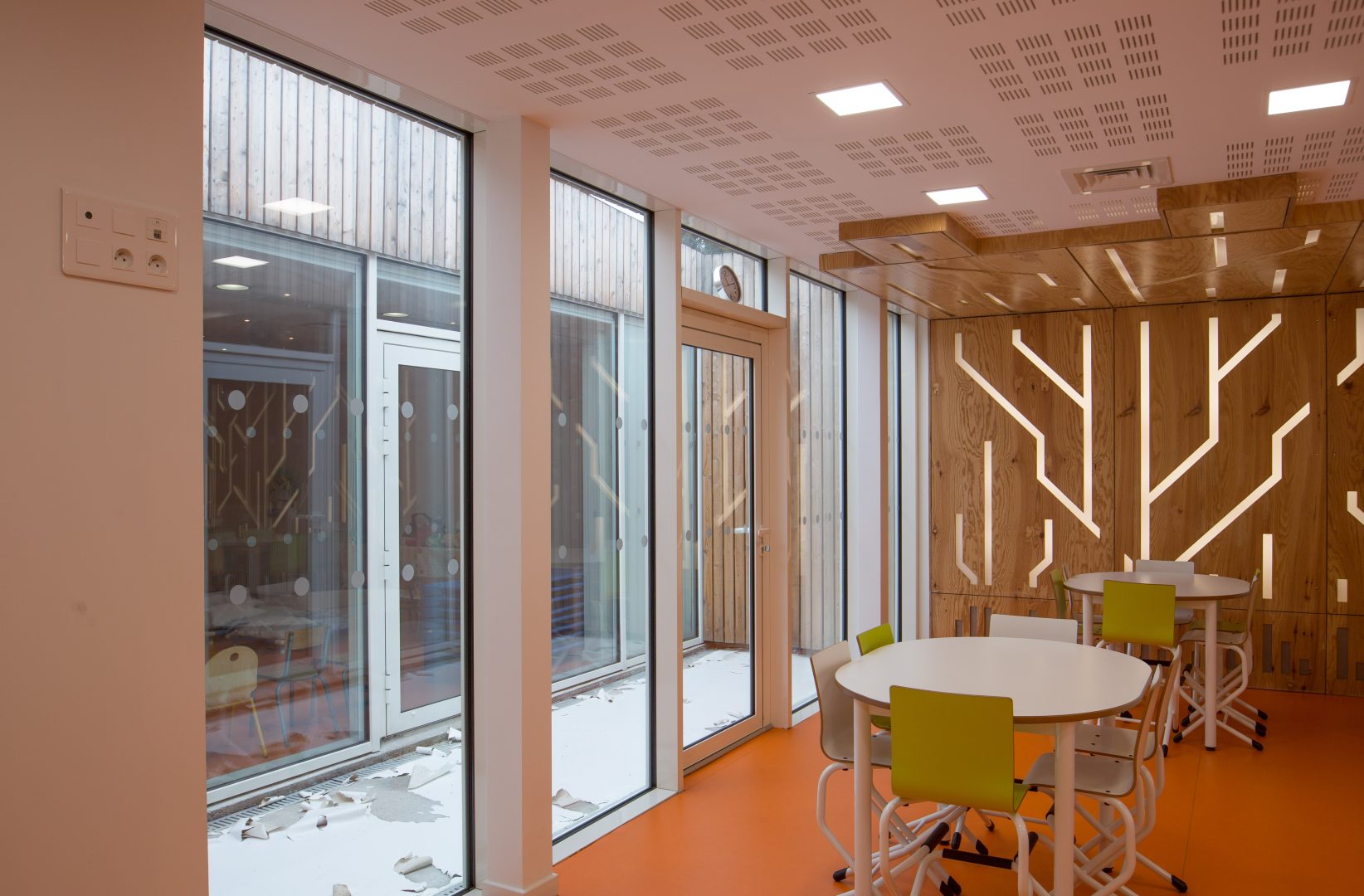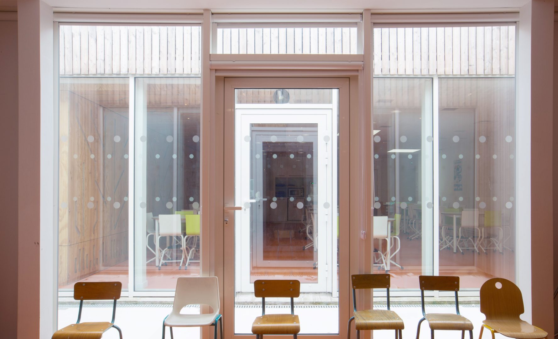 Le projet consiste en la réhabilitation d’une partie de l’école autour de la création d’un patio : la salle à manger, l’office de restauration, le dortoir.